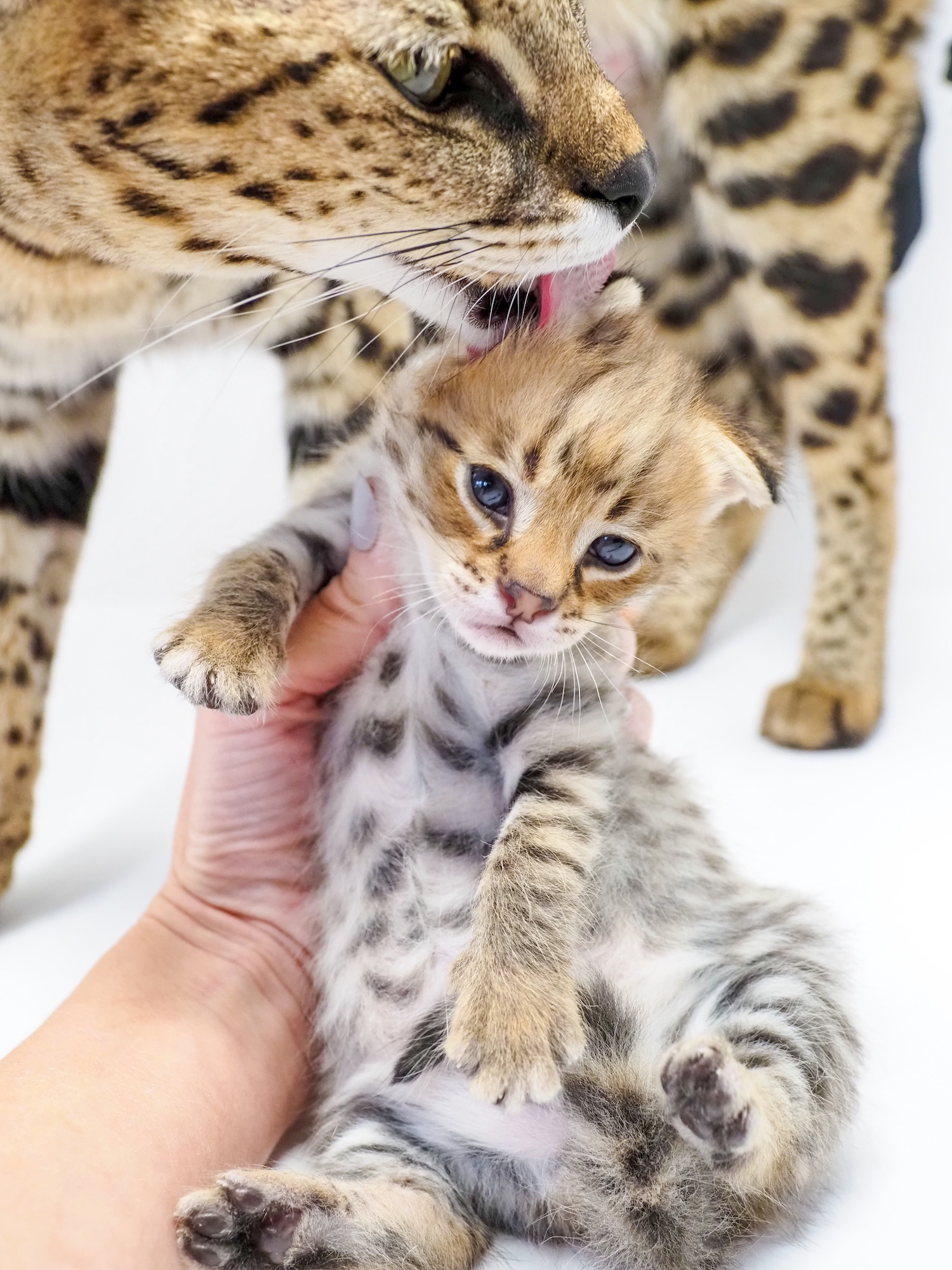 Welcome to Savannah Seattle, where we proudly raise remarkable F1 and F2 Savannah kittens with sweet and loving personality. Our dedicated breeding program focuses on enhancing the breed's unique characteristics of the exotic look, that emphasizes wild serval features: large ears, long legs, and a beautiful vivid pattern. All of our cats are raised in our home with our 2 children. We take pride in the amount of work that we do to socialize our kittens, we share their growth through daily social media updates and provide harness training and cat wheel training. Hand delivery available all over the USA.